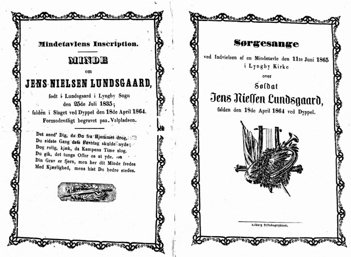 Original sang fra indvielsen af mindetavlen i 1865
