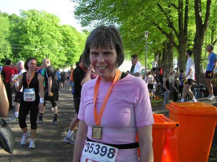 Her kommer Maria med medalje om halsen
