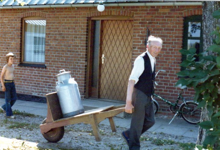 Far henter vand til fårene