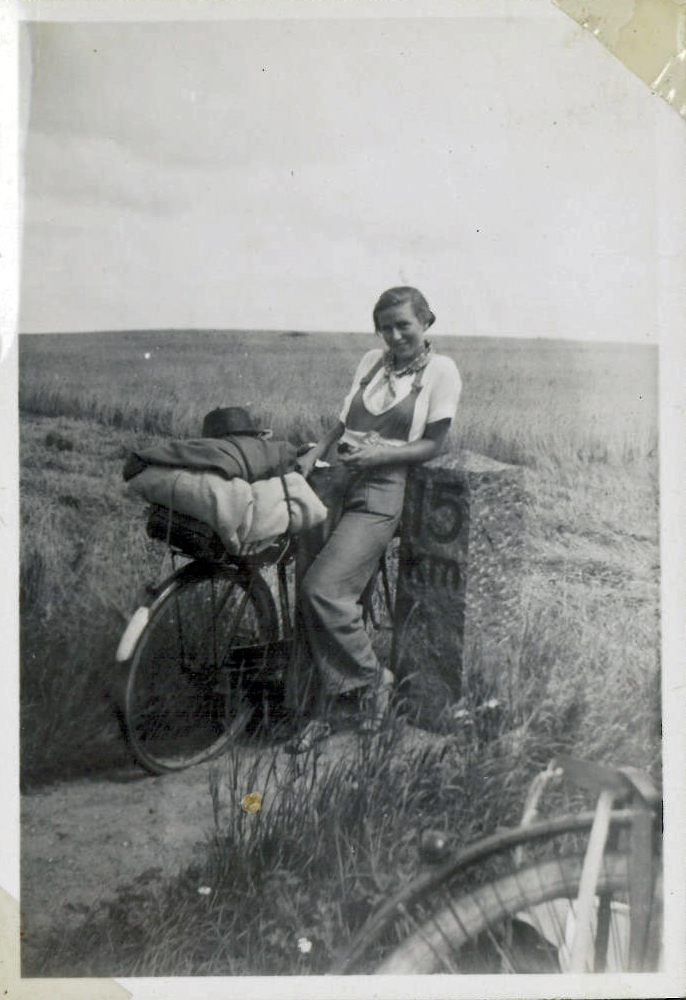 Eva med Cykel og lange bukser