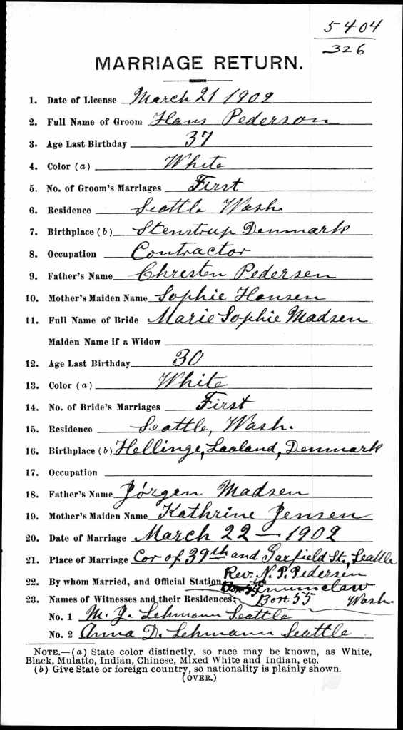 Hans pedersen Marrige