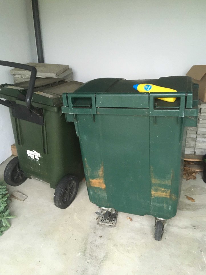 Gul drikkedunk fundet i skralde container Gullestrup kirke