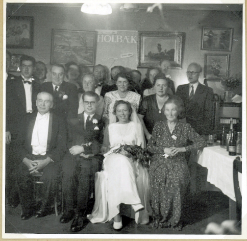 Uddrag fra Emrys Erindringer: Vanskelighederne med at fremtrylle mad og drikke lod sig forholdsvis godt overvinde. Derimod måtte vi finde os i, at adskillige ellers selvskrevne gæster meldte afbud, fordi de simpelthen ikke turde vove sig ud på en jernbanetur, og for fynboernes vedkommende – Harald og Agnethe – virkede især turen over Storebælt afskrækkende. Søster Ingeborg turde heller ikke vove livet ved en rejse fra Nykøbing Falster. Det samme gjaldt fru Erdmann Andersen. Ermegaard og L.P. vovede sig dog helt fra Esbjerg og hertil. Toggangen var så usikker, at det tog dem to dage, hver gang, og de måtte overnatte hos min kusine Else i Nyborg. Vore øvrige børn, som på det tidspunkt alle var i København, mødte selvfølgelig også frem. Eva var på det tidspunkt den eneste af dem, der var indtrådt i ægtestanden, hvorfor Hans jo også var med. Endvidere husker jeg tante Jenny, vistnok med sønnen Preben, og her fra Holbæk min fætter Regnar og hans hustru Oda, samt vore faste omgangsfæller – de to frisørfamilier Nielsen og Hansen. Kusinerne Julie og Ellen vovede rejsen.