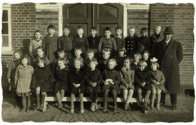 Derefter gik jeg over til afskedstalen, mindede om, at jeg især havde haft fagene religion, dansk, historie og sang, og at disse for så vidt var utaknemmelige, som det først er på langt sigt, måske om 10 eller 20 år, man er klar over, hvad en lærer dengang forklarede. Så takkede jeg dem, der havde ydet deres bedste i timerne og opført sig godt. Når barndomstiden er en lykkelig tid, skyldes det blandt andet, at man har en følelse af at være i udvikling. Stræb stedse efter det. “Har til målet du nå’t, sætter straks du et nyt!” – Tak til min klasse for udsmykningen i morges og for de smukke gaver, og ligeledes tak til de andre børn, som glædede mig i lørdags med deres gaver. Så vil jeg her kort, medens alle hører dette, takke mine kollegaer for godt medarbejderskab, men det vil jeg uddybe lidt mere, når vi er alene. Skal vi slutte med: “Dejlig er jorden”.